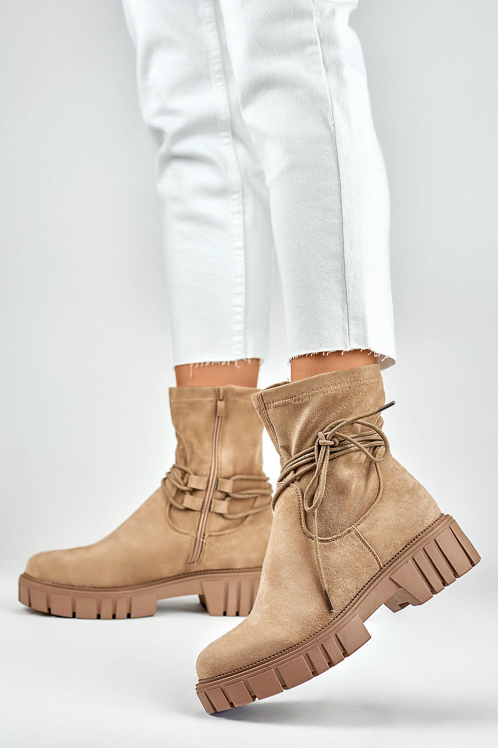 These boots are the perfect choice for colder days. Their stretchy eco-suede leather upper is 18 cm high, providing warmth and a fashionable look. The interior of the boots is padded with a textile insole for added comfort. A sturdy heel and a zipper for easy putting on are other advantages of these boots. Their round toe makes them suitable for many outfits. For comfort and style, choose these boots for fall and winter.