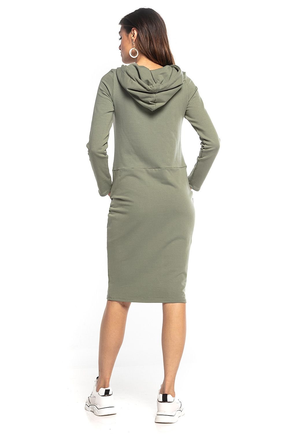 Fitted dress made of pleasant to the touch sweatshirt knit with a hood and long sleeves. Kangaroo pocket on the front. Our proposal is ideal for everyday as well as sports styling.
