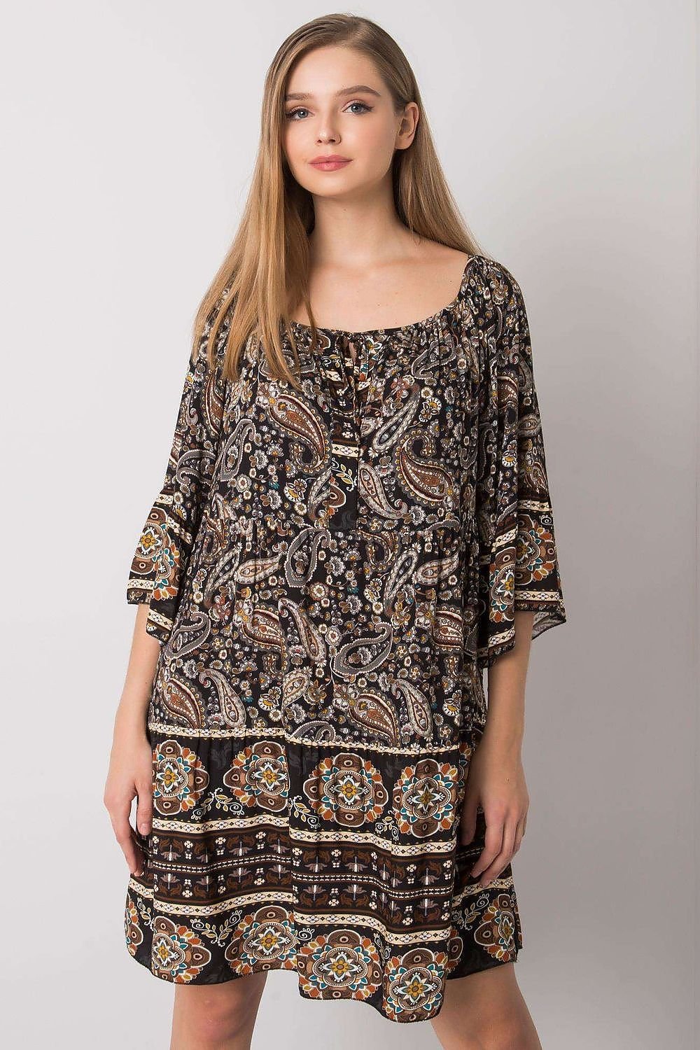 Patterned dress with 3/4 sleeves and a round neckline. Dress with a loose cut ideal for many occasions.