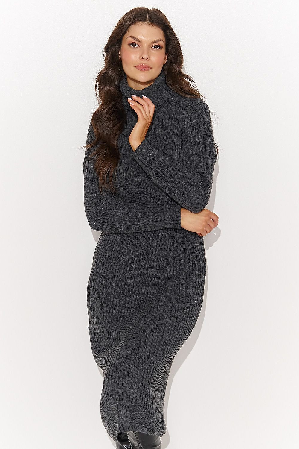 Extremely feminine long sweater will wrap you up on cooler days. You can treat the sweater as a midi length dress. This is an elegant version of a comfortable look for the autumn-winter period. The model is available in four classic shades of black, brown, dark gray and warm beige. Each of them will go well with an elegant coat or leather jacket. And add boots or boots and the styling is ready. Combine comfort with classic elegance and reach for a sweater that you will wear both to work and every day. Play with fashion, reaching for proven solutions, perfect for any female figure.