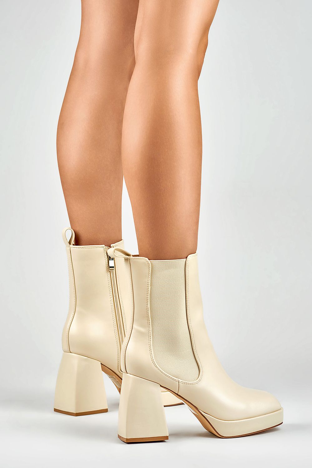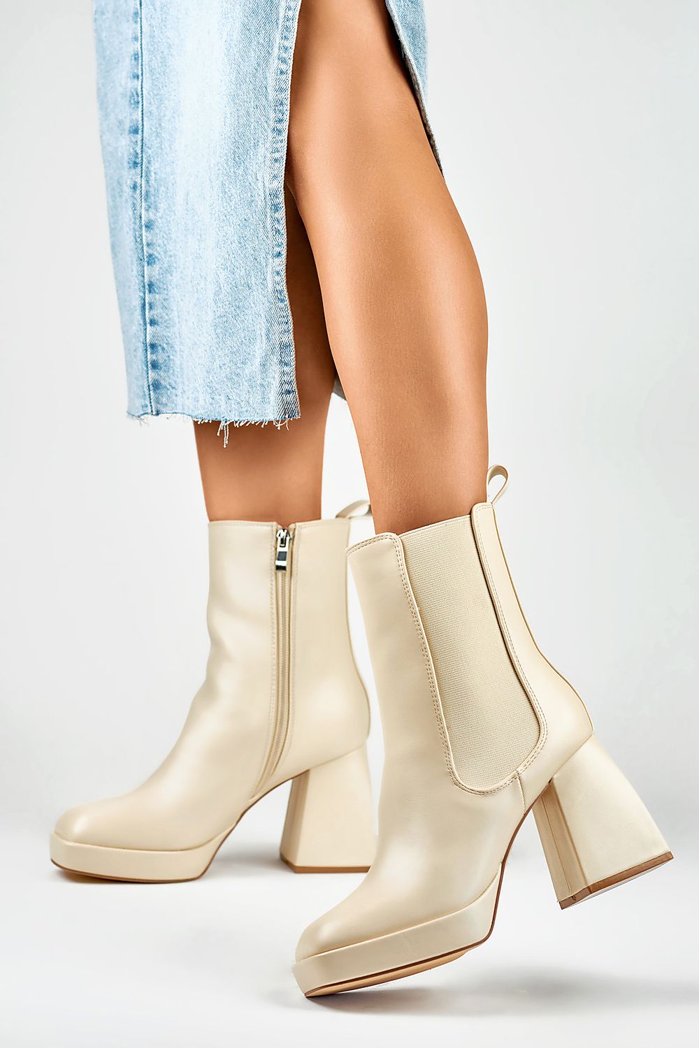 These beige boots are the perfect choice for the colder days of autumn and winter. Their upper is made of eco-friendly leather, which gives them an elegant look. The boots have a stable stiletto with a height of 9 cm, which will add confidence to your step, they will be comfortable even during longer walks. The interior of the boots is lined with ecological leather, which ensures the comfort of wearing. The zipper on the side makes it easy to put on and take off the shoes. The square toe gives them a modern touch. These boots will perfectly complement many autumn and winter outfits, adding a touch of elegance and comfort.