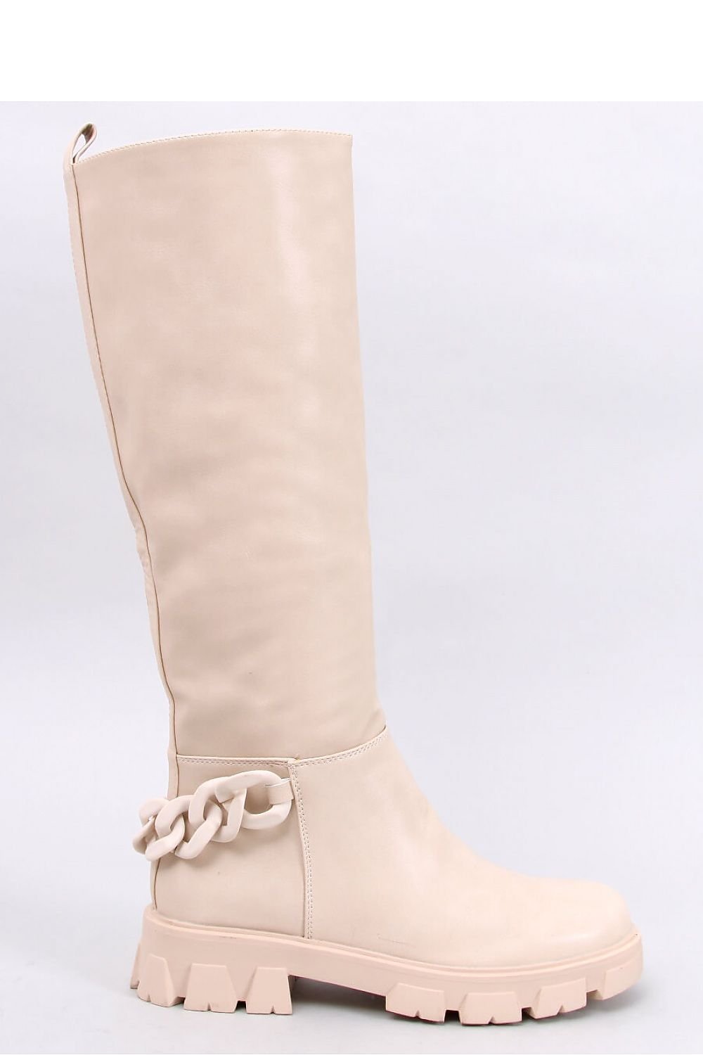 Women's boots - jackboots on a high sole. They have a minimalist design with an easily removable fashionable chain. If you follow the trends then you absolutely must have them! The comfort of putting them on is provided by the zipper closure on the side of the upper. They are made of organic leather, on a foam lining.