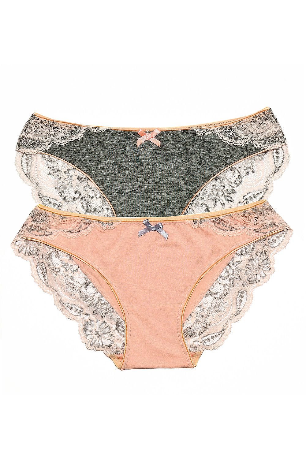 New from the exclusive Polish brand Enfin, a lovely set of two Brazilian panties. One in peach, the other in grey, both topped with exquisite, luxurious lace, which noticeably goes around the thighs. What is their secret? In skilful combination of sexy design with mega-comfortable cotton and exclusive accents. This is what we want. Both pieces are packed in a fine cardboard box, ideal for a gift.