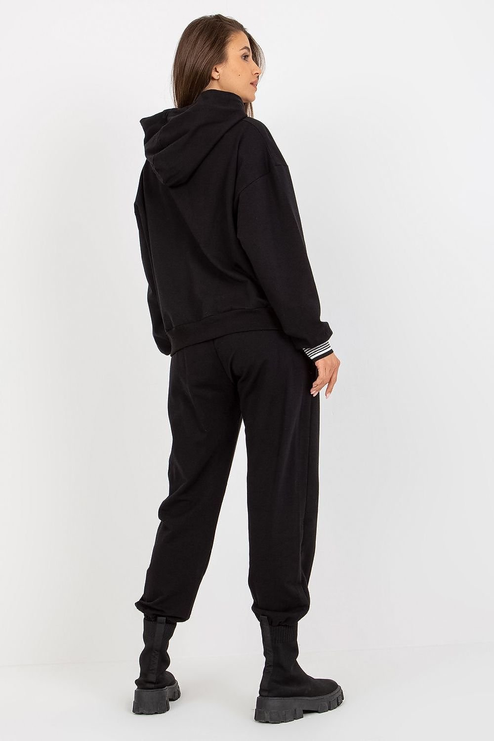 A sweatshirt set consisting of a sweatshirt and pants. Sweatshirt with long sleeves, hood and kangaroo pocket. Long pants with a tie at the waist, slip pockets on the sides.