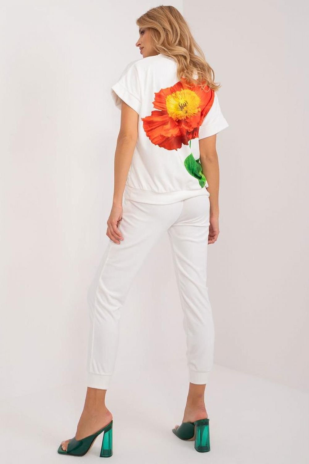This velour set is the perfect choice for those who appreciate comfort and style on a daily basis. It consists of a blouse and pants, which form a harmonious duo of a casual look. The blouse, made of soft polyester, features a print that gives it an individual touch. Its short sleeves add lightness and casualness, perfect for warm days. The pants, kept in a solid color, are long and comfortable. Their high waistband with drawstring waistband makes them fit snugly, ensuring comfortable all-day wear. In addition, the side slip pockets are a practical feature, allowing you to safely store small items. The drawstring leg style gives the pants a casual feel, while adding a note of sporty lingo. With its casual style, this velour set will become an indispensable part of your everyday closet, adding comfort and style to any situation.