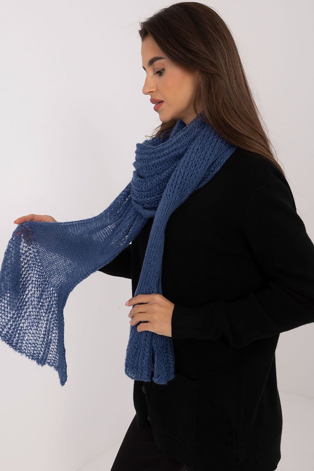 Knitted women's scarf made of soft wool with cotton is the perfect choice for colder days. Thanks to its length of 186 cm, it allows you to wrap it freely around your neck for warmth and comfort. Natural materials make the scarf pleasant to the touch and durable at the same time. It will be perfect for both everyday and more elegant outfits, adding subtle charm and a stylish finishing touch.