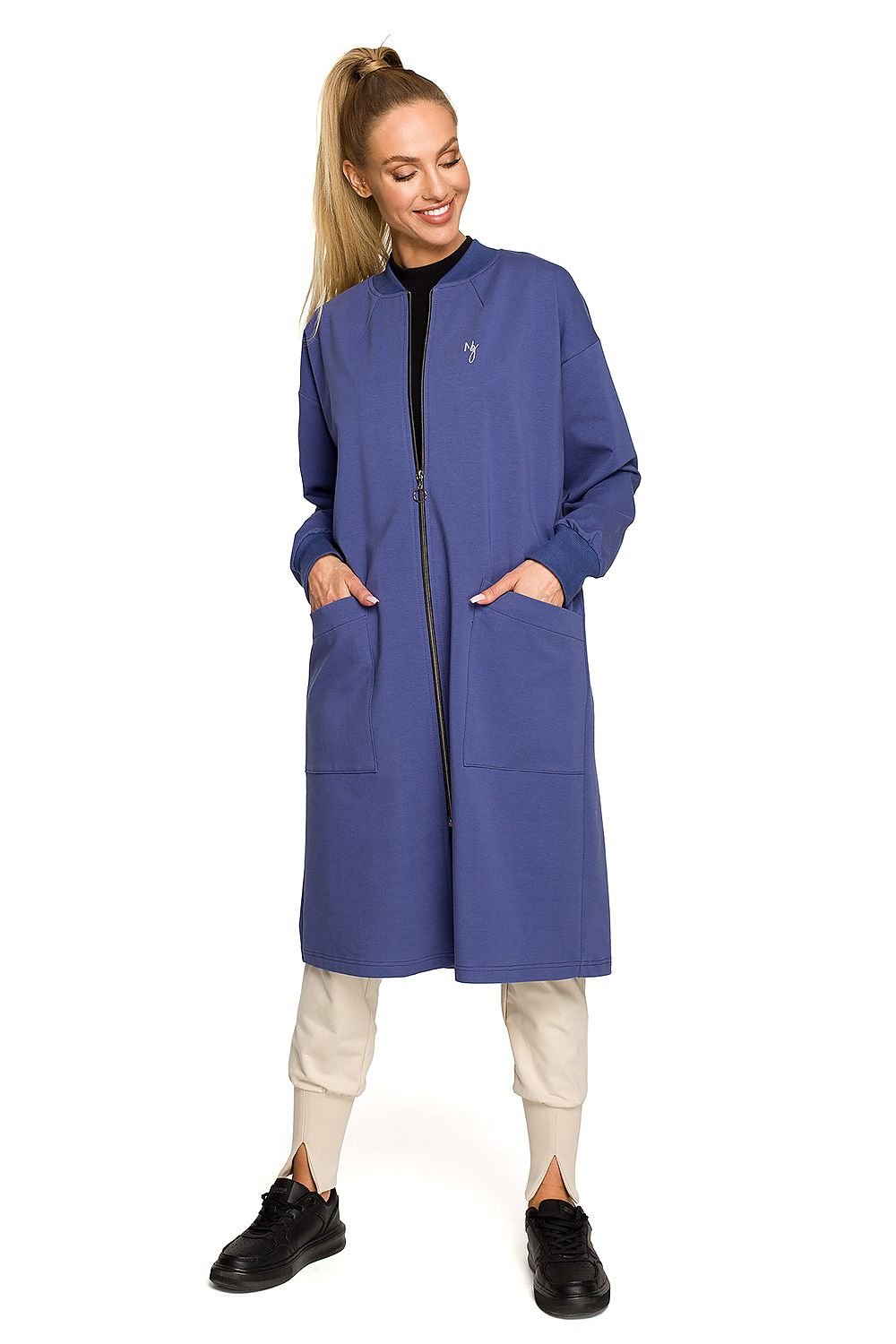 A long sweatshirt like a parka with a ribbed neck will replace a light coat. Comfortable slightly oversized cut and cotton knit will ensure comfort in wearing, and modern design will work in many stylings. The sweatshirt is zippered, with large pockets sewn on the sides.